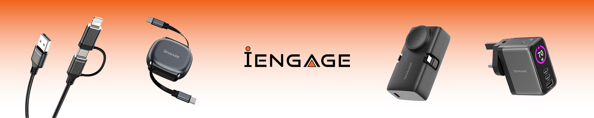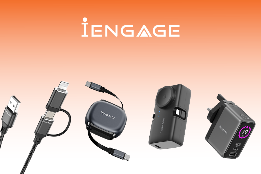 iEngage 100W AI PD Charger( USB-C+USB-C Cable+ USB- A) W/Interchangeable UK/EU Plug