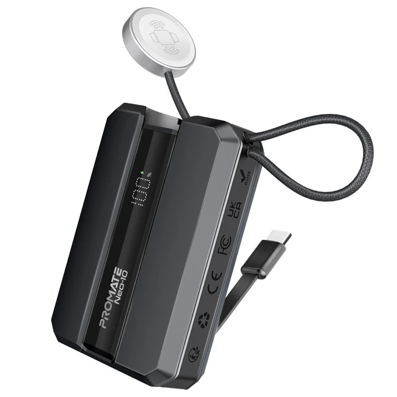 - 10000mAh 30W Power Delivery Ultra-Fast Power Bank w/ In-Built USB-C Cable & Apple Watch Charger