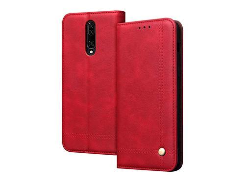حافظة كتاب جلدية لهاتف OnePlus 7 Pro (أحمر)-N2TD