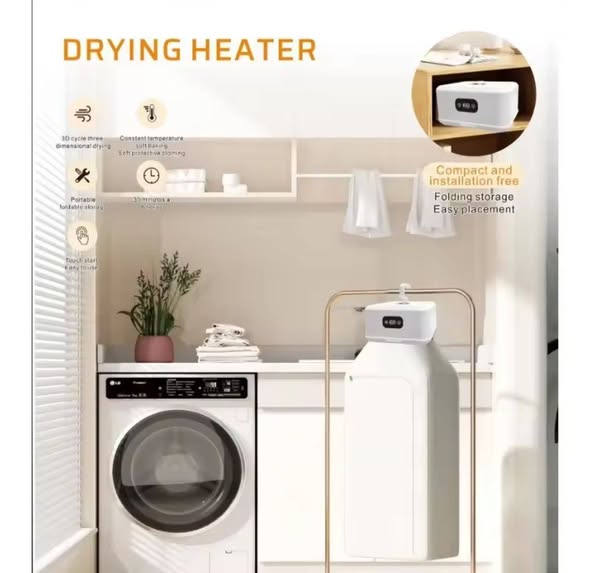 Dry your clothes quickly and conveniently with this compact Drying Heater. Designed with a 3D circulating hot air system, it provides gentle, even drying while protecting fabrics. Its portable, foldable design makes it perfect for small spaces, apartments, or quick daily use.