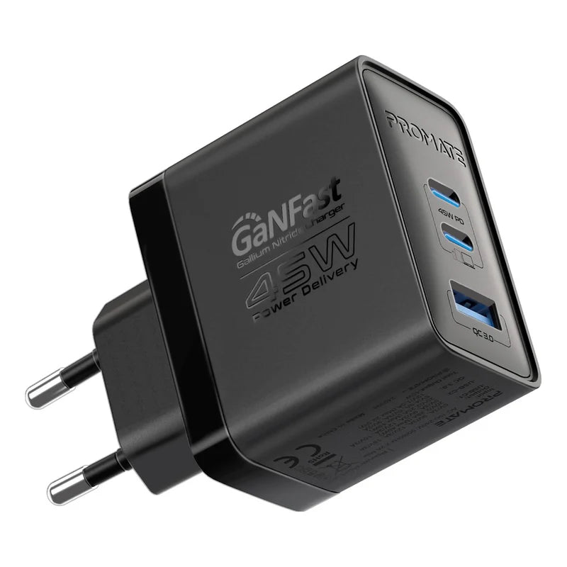 - Promate 45W Power Delivery GaNFast™ Charging Adapter 2 x 45W USB-C PD Ports Promate 45W Power Delivery GaNFast™ Charging Adapter 2 x 45W USB-C PD Ports