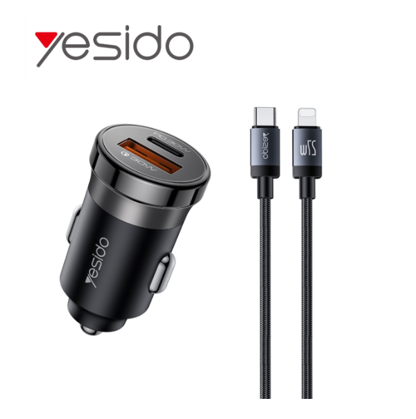- Yesido Y73 Super Fast Car Charger QC3.0+PD 30W with Type-C to Lightning Cable – Black Yesido Y73 Super Fast Car Charger QC3.0+PD 30W with Type-C to Lightning Cable – Black