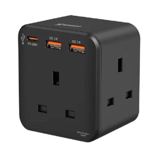 - XPower WSS1 PD 20W 3-Outlet Cube Extension Socket - Black XPower WSS1 PD 20W 3-Outlet Cube Extension Socket - Black
