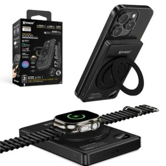 - Xpower 10000mah 20w 6in1 Wireless Ultra Thin Power Bank With Stand - Black Xpower 10000mah 20w 6in1 Wireless Ultra Thin Power Bank With Stand - Black
